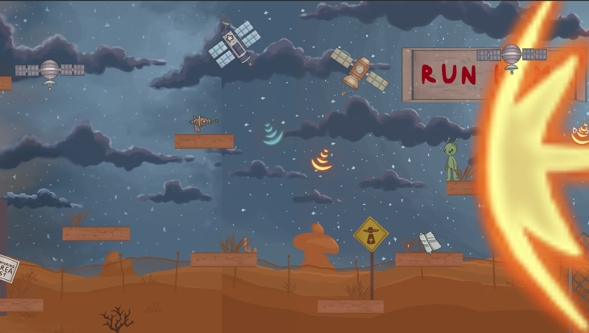 Our little alien John Glorbert has a mission - Saboteur the signals.